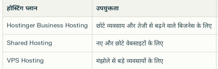 यदि शुरुआत हो रही हो तो Hostinger का Business Web Hosting प्लान बेहतर है क्योंकि यह मूल्य, प्रदर्शन और सपोर्ट का अच्छा मिश्रण प्रदान करता है। बाद में, जरूरत के अनुसार VPS की ओर बढ़ा जा सकता है।इस विकल्प में तेज़ लोडिंग, 24×7 समर्थन, और सुरक्षा फीचर्स मिलते हैं जो छोटे व्यवसायों के लिए उपयुक्त हैं।